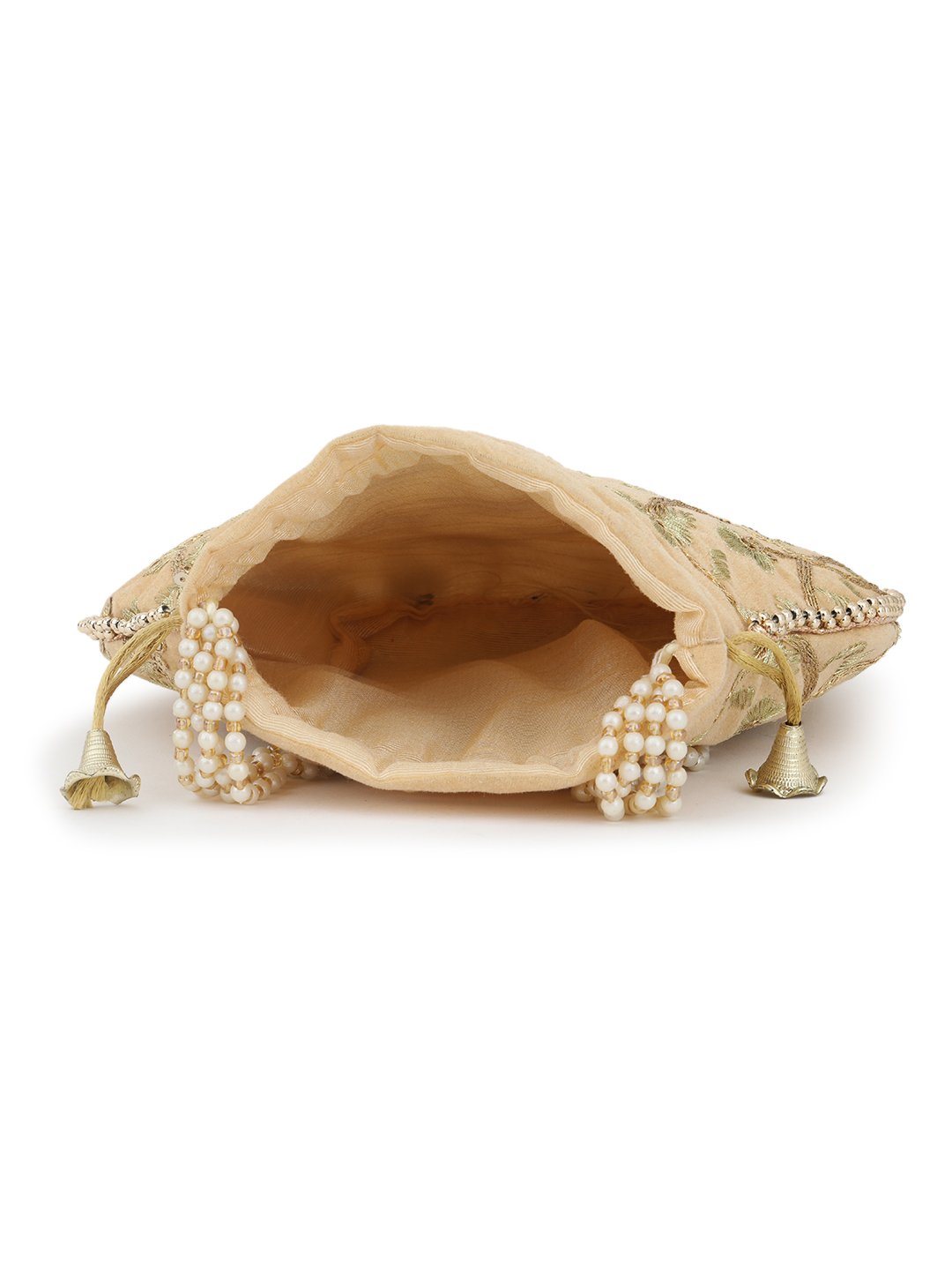 Home W_Bags Potlis PK 2 Combo – Designer Embroidered Potli Bag – Golden & Beige