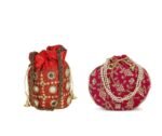 Combo – Designer Embroidered Potli Bag – Red & Pink