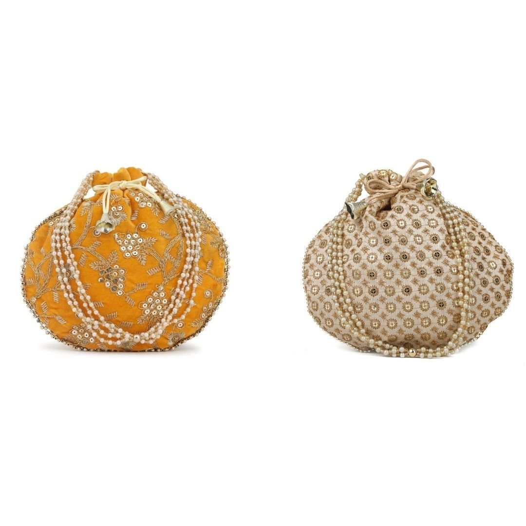 Home W_Bags Potlis PK 2 Combo – Designer Embroidered Potli Bag – Yellow & Golden
