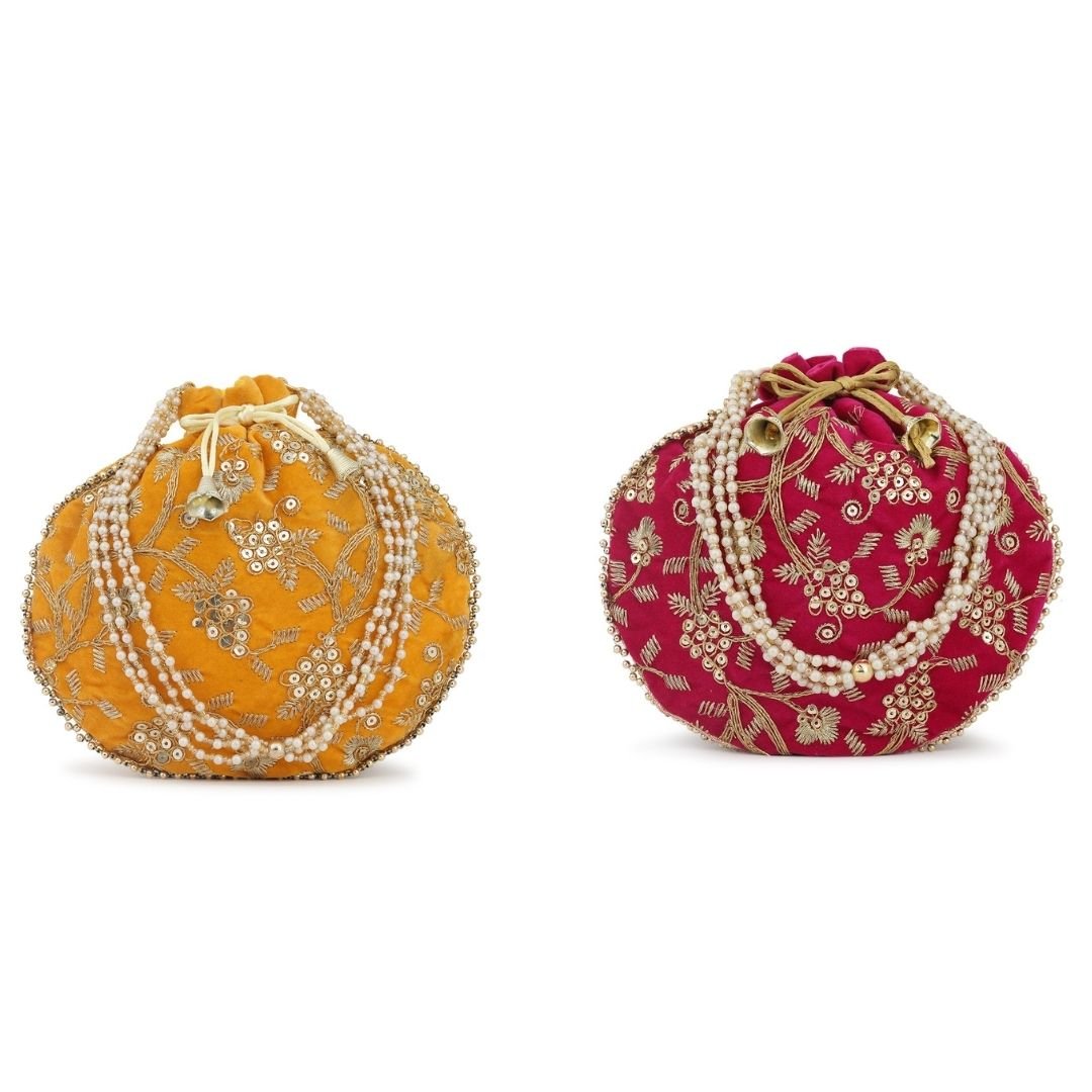 Home W_Bags Potlis PK 2 Combo – Designer Embroidered Potli Bag – Yellow & Pink