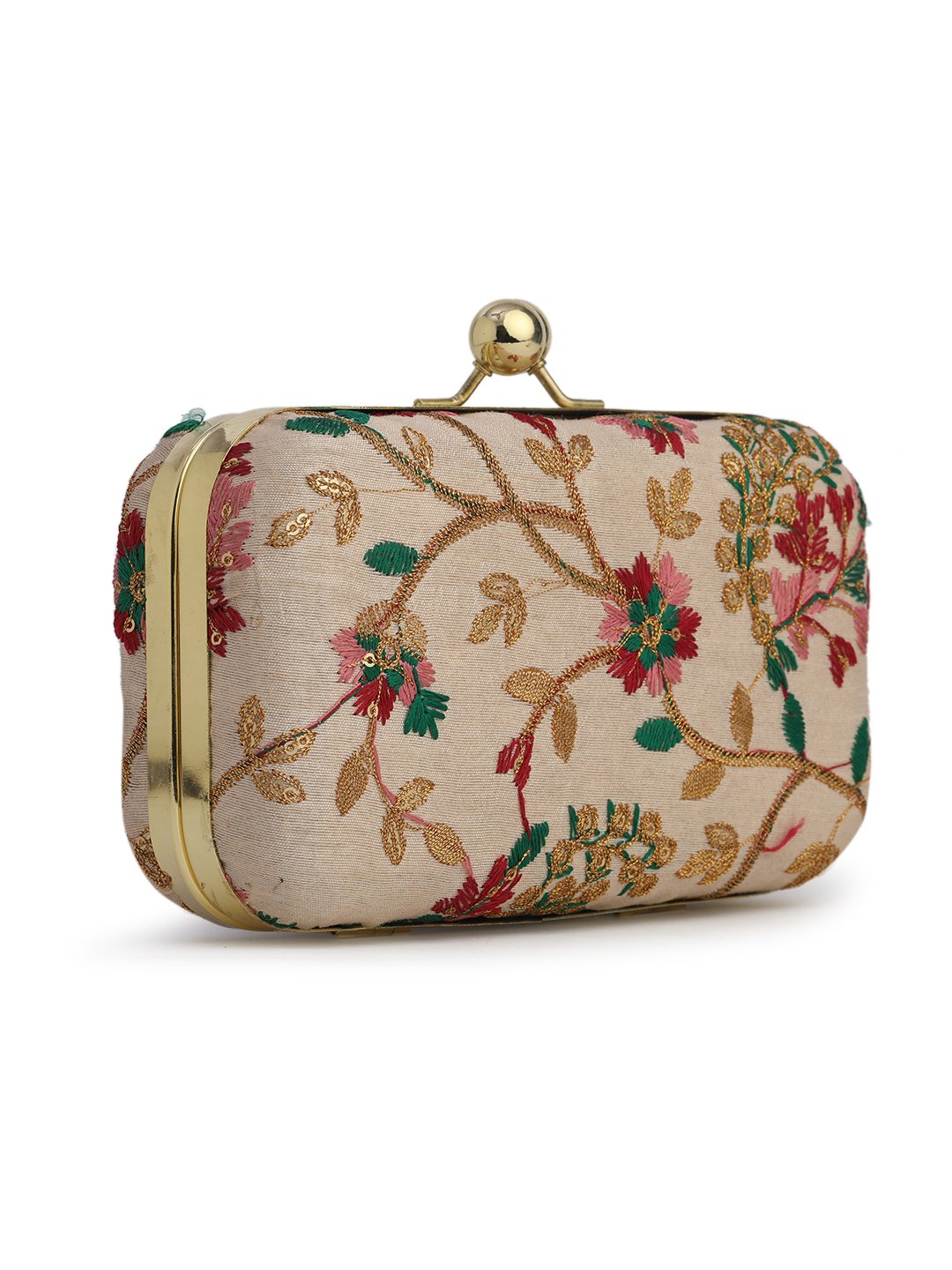 Combo Of Boho Bag And Off White & Gold Embroidered Box Clutches For Girls and womens(Multicolor)