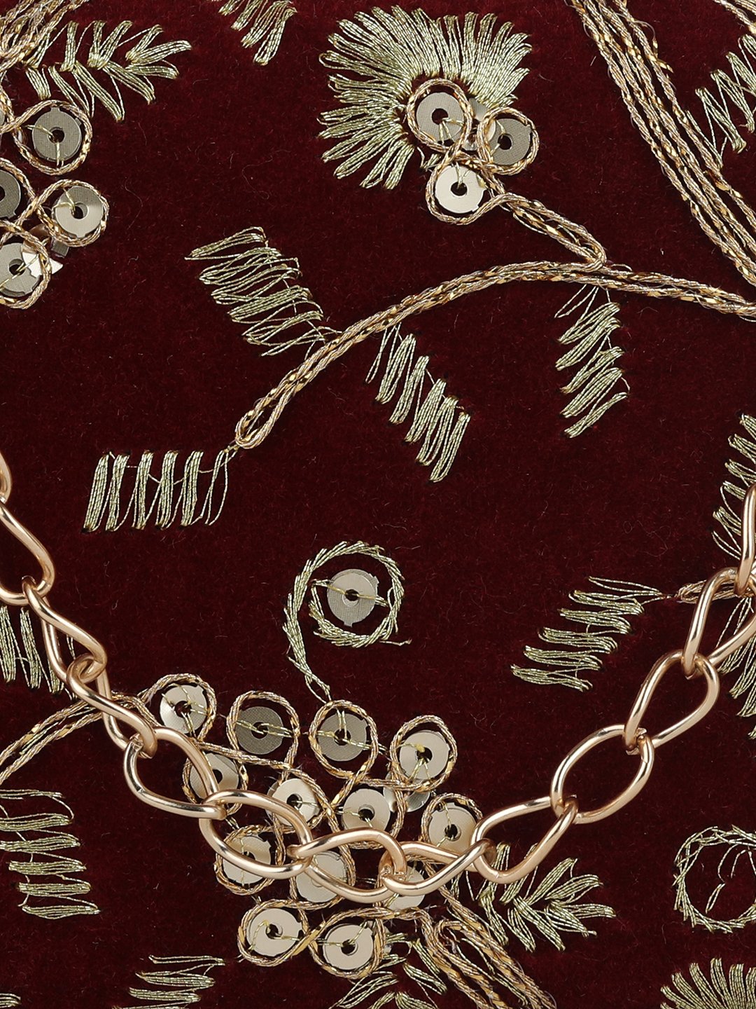 Maroon Embroidered Box clutches, Has gold chain shoulder strap, 1 main compartment with twist closure