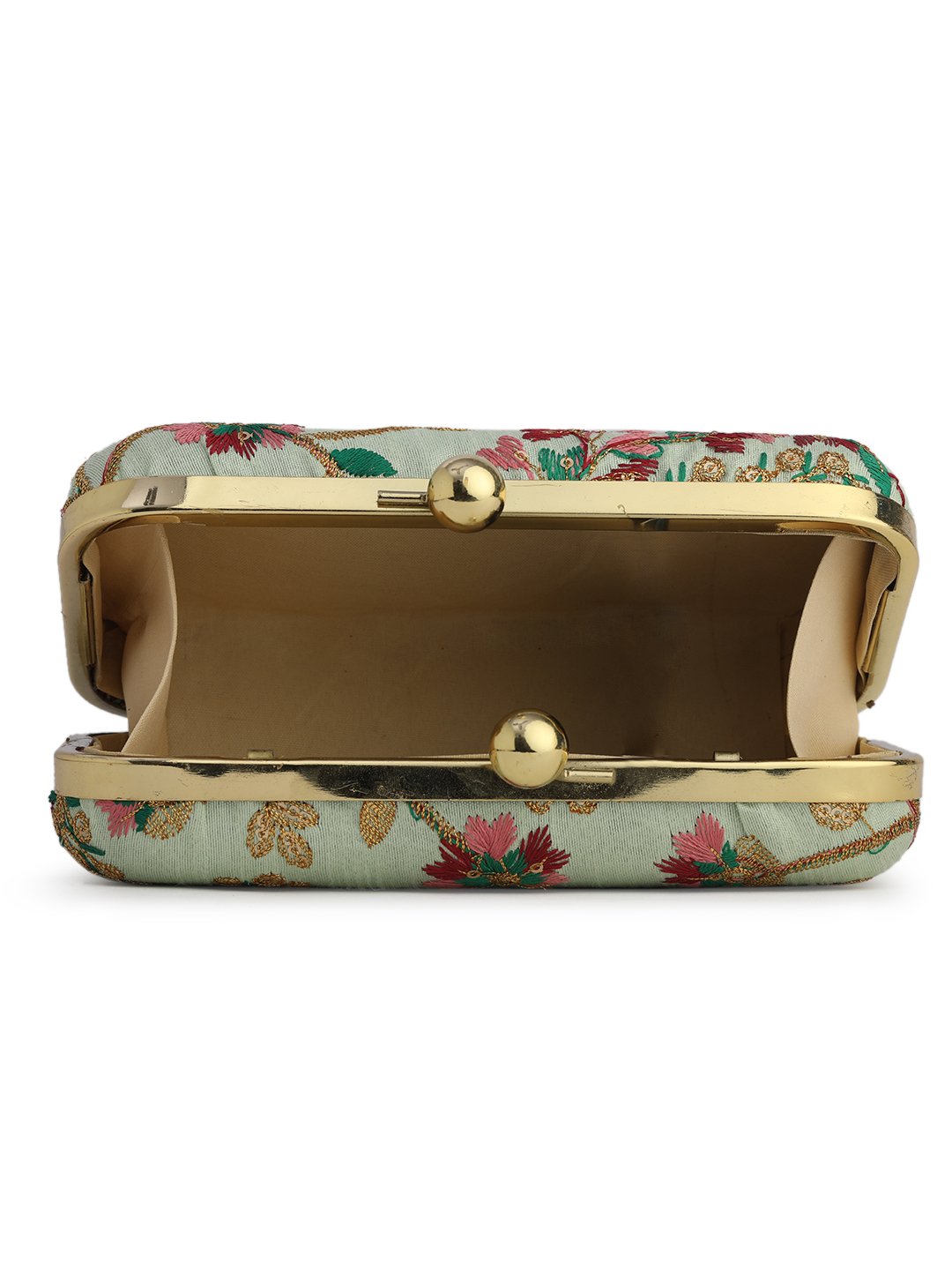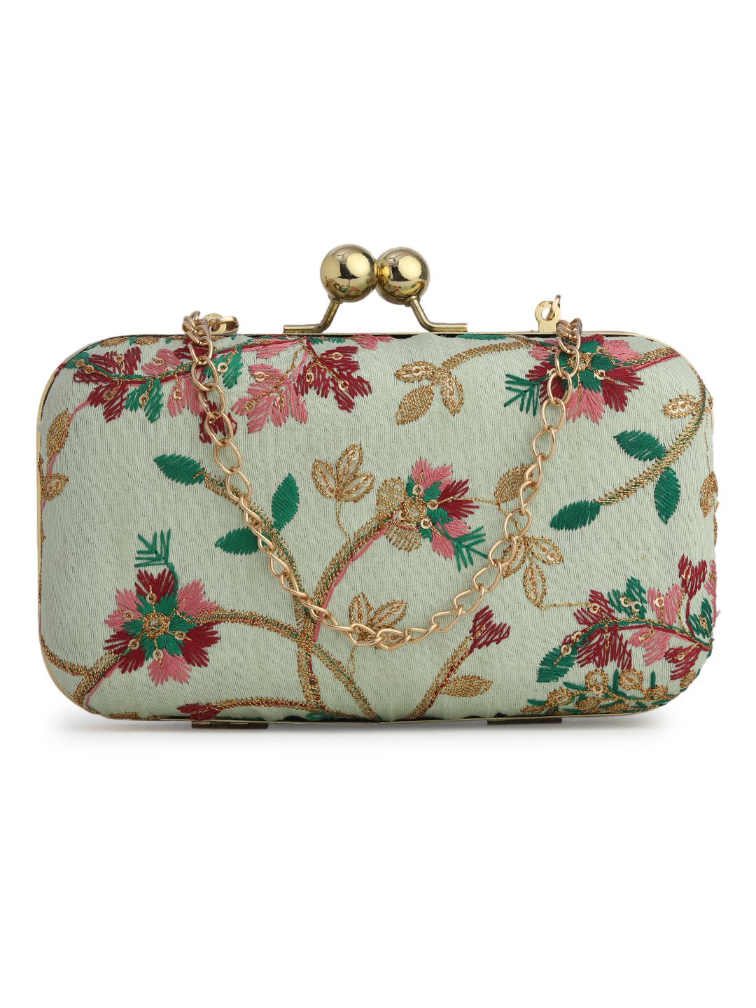 Beige & Gold Embroidered Box Clutches For Girls and womens