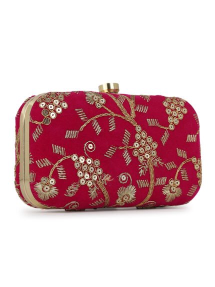 Peach & Gold Embroidered Box clutches, Has gold chain shoulder strap, 1 main compartment with Kiss closure