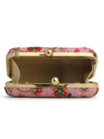 Pink & Gold Embroidered Box clutches, Has gold chain shoulder strap, 1 main compartment with twist closure