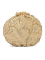 Designered Embroidered Silk Potli Bag silk Potli Beg (Golden)